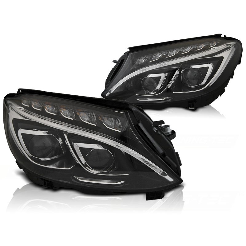 Découvrez les phares TRUE DRL noirs spécialement conçus pour les modèles MERCEDES W205 de 2014 à 2018. Ces phares de haute qualité sont l'option idéale pour remplacer vos anciens phares halogènes, offrant une technologie avancée et un design moderne qui rehaussera l'apparence de votre véhicule.