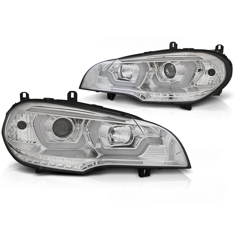Découvrez les phares TUBE LIGHT DRL chrome spécialement conçus pour votre BMW X5 E70 de 2007 à 2013. Ces projecteurs avant, dotés de jantes halo 3D doubles, offrent une combinaison parfaite de design moderne et de performance exceptionnelle. 100% neufs et vendus par paire, ces phares sont la solution idéale pour ceux qui souhaitent améliorer l'esthétique et la sécurité de leur véhicule.