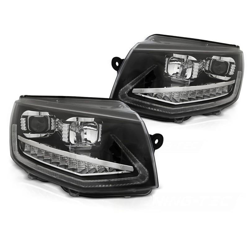 Découvrez les phares TUBE LIGHT DRL noir séquentiel spécialement conçus pour le Volkswagen T6 (modèles de 2015 à 2019). Ces phares avant innovants allient design moderne et technologie avancée pour offrir une visibilité optimale et un style distinctif à votre véhicule. Parfaits pour les conducteurs exigeants, ces phares sont un choix idéal pour améliorer à la fois l'esthétique et la sécurité de votre voiture.