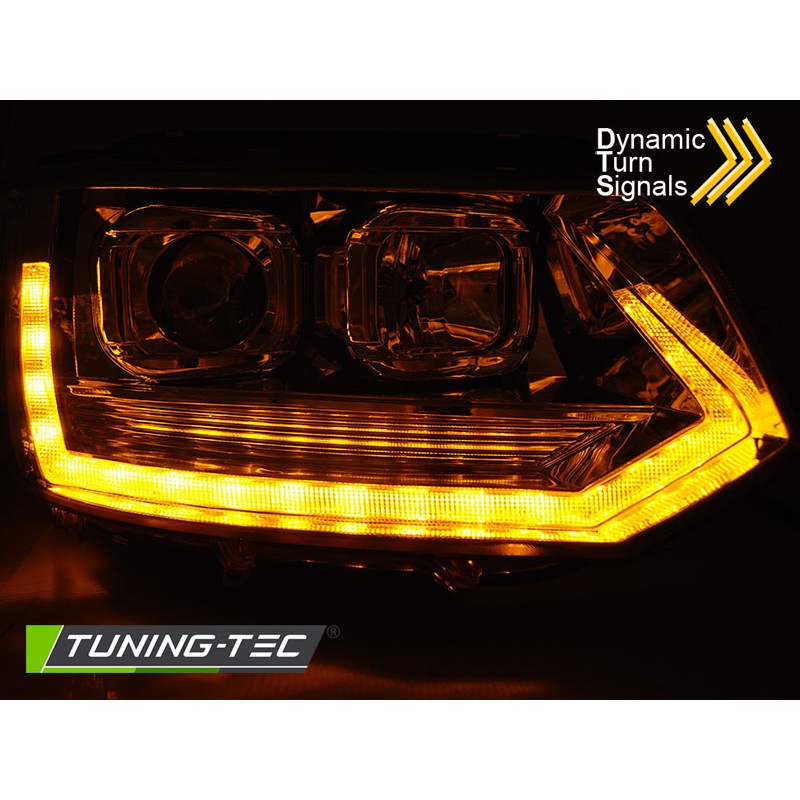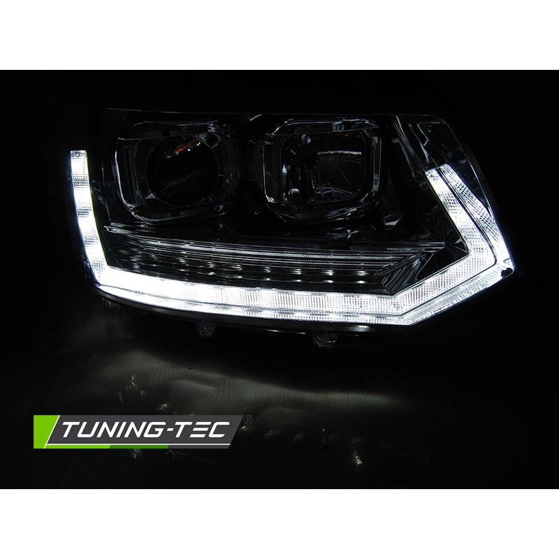 Découvrez les phares TUBE LIGHT T6 LOOK Chrome spécialement conçus pour les modèles VW T5 de 2010 à 2015. Ces projecteurs avant, dotés de la technologie Daytime Running Lights (DRL), vous offrent une visibilité optimale et un design moderne qui rehaussera l'esthétique de votre véhicule.