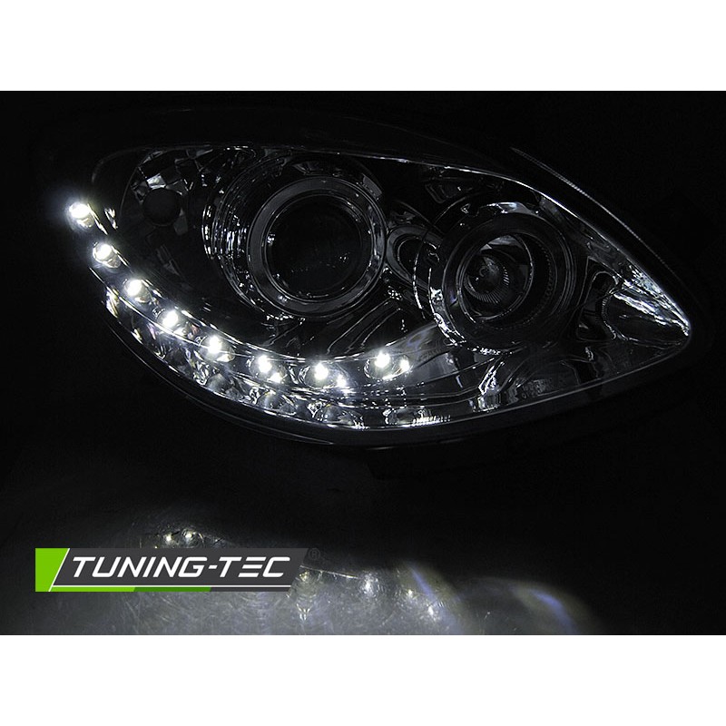 Découvrez les feux de jour chromés pour Renault Twingo 2007-2011, une solution d'éclairage automobile qui allie design moderne et performance exceptionnelle. Ces phares à projecteur, équipés de lumières de stationnement LED, sont conçus pour offrir une visibilité optimale tout en ajoutant une touche d'élégance à votre véhicule. 100% neufs et vendus par paire, ces feux sont homologués avec le marquage E6, garantissant leur conformité pour un usage légal sur route.