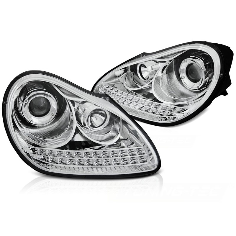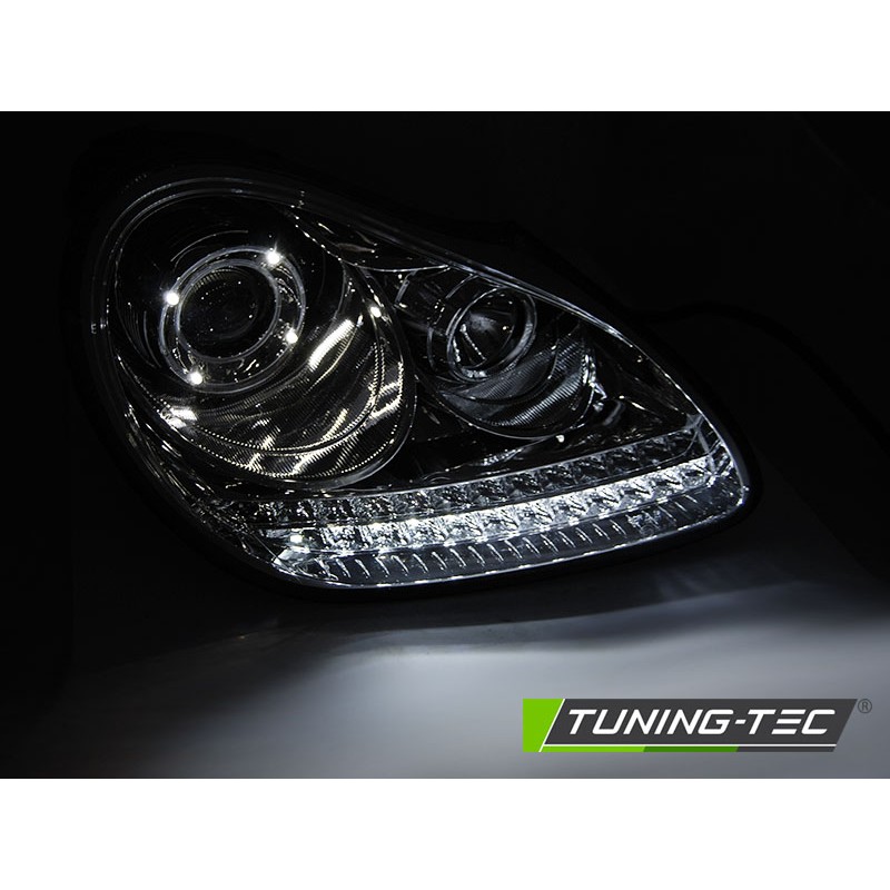 Découvrez les feux de jour Chrome HID Xenon pour Porsche Cayenne 2002-2006, une solution d'éclairage avant innovante qui allie design moderne et technologie avancée. Ces projecteurs avant sont conçus pour offrir une visibilité optimale et un style inégalé à votre véhicule. Parfaits pour les passionnés de voitures qui recherchent à la fois performance et esthétique, ces feux de jour sont un choix incontournable.