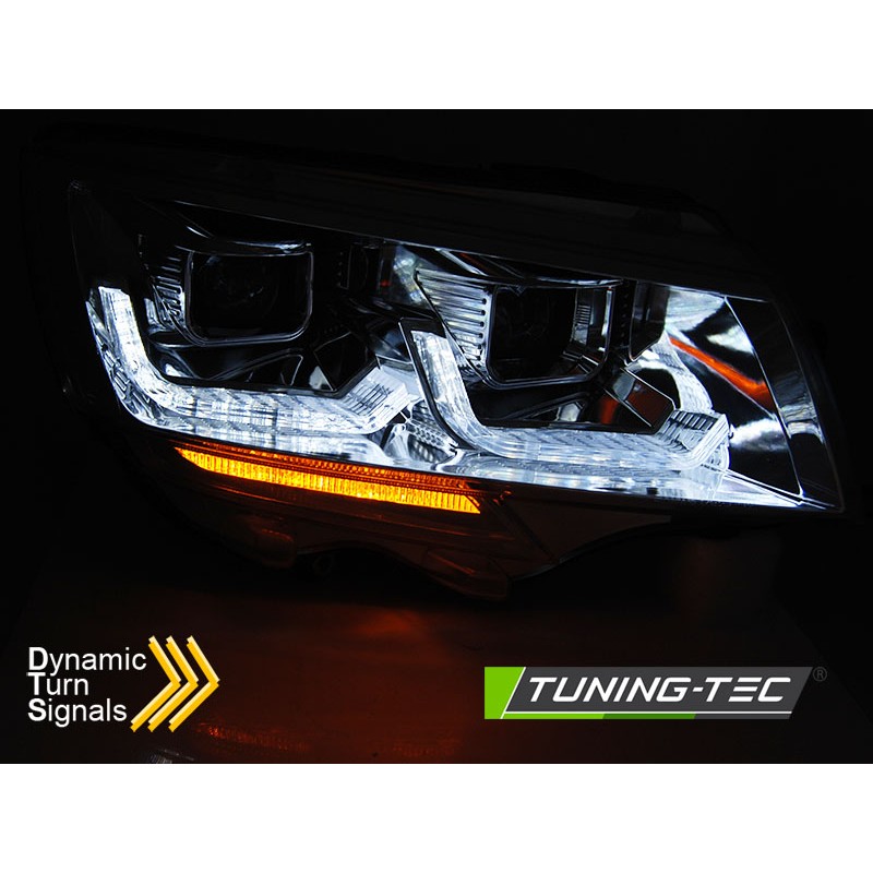 Découvrez les phares tube light chrome DRL séquentiel spécialement conçus pour le modèle VW T6.1 20-. Ces phares à projecteur, dotés de Daytime Running Lights (DRL) et d'un clignotant dynamique, sont la solution idéale pour remplacer vos phares halogènes standard. Offrant une performance lumineuse exceptionnelle et un design moderne, ils sont vendus par paire (gauche et droite) et sont 100% neufs.