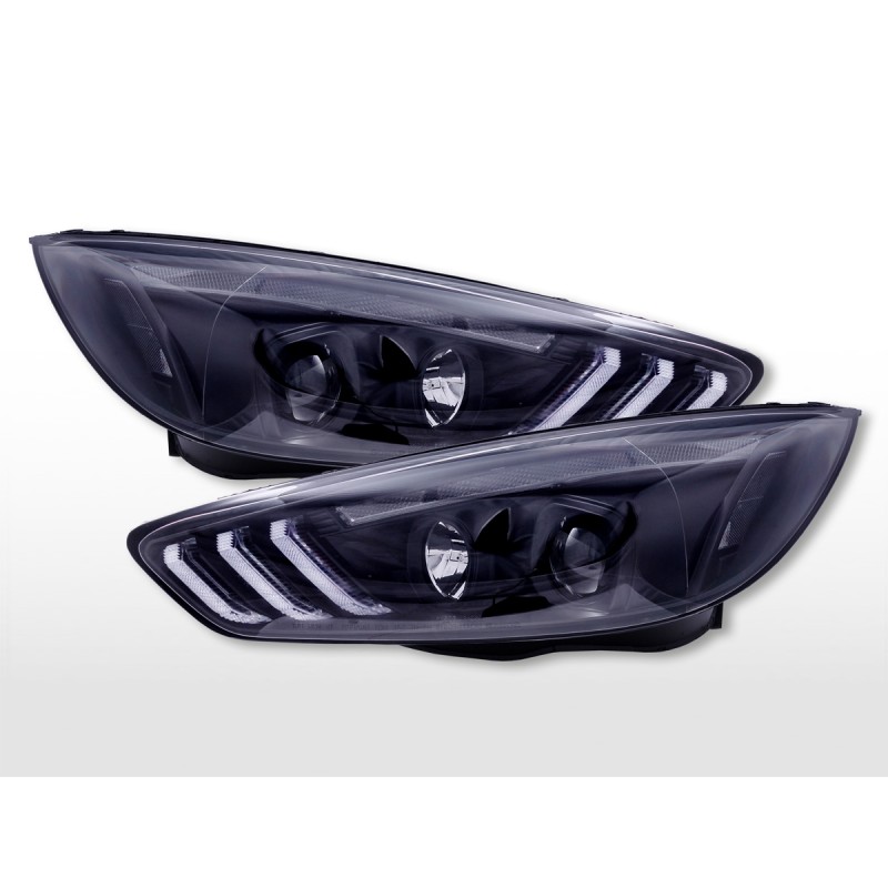 Phares de jour avec feux de jour à LED Ford Focus Année de construction 2015-2018 La couleur noire gauche + droite (ensemble) avec marque de contrôle "E"