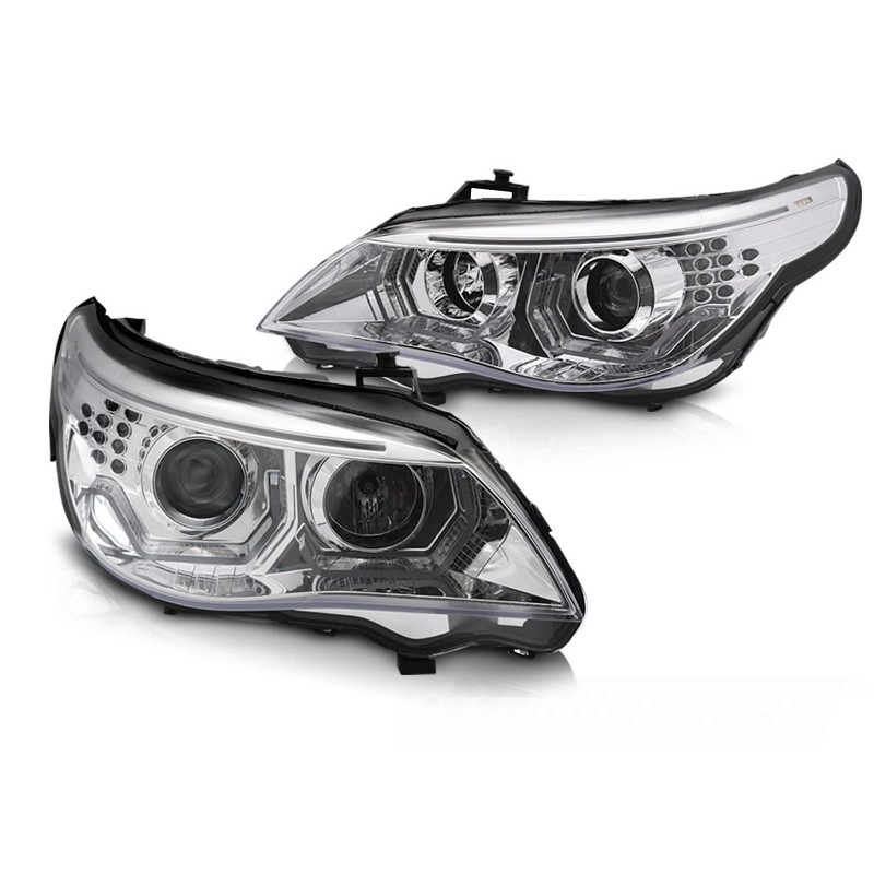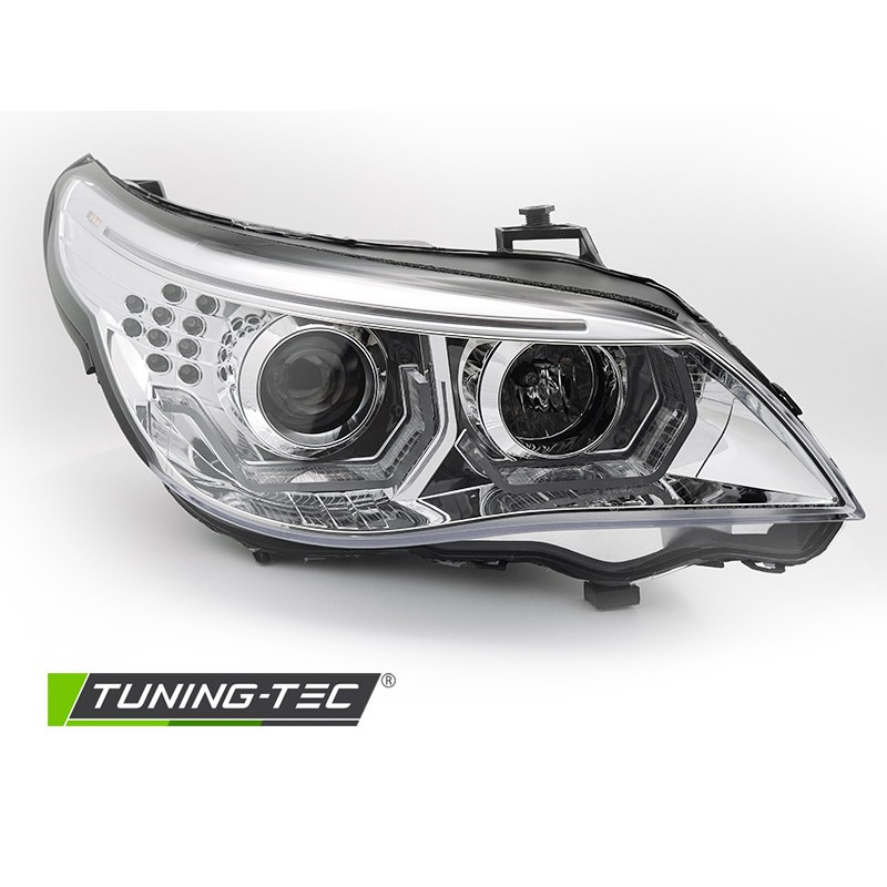 Découvrez les phares Angel Eyes LED 3D Chrome, spécialement conçus pour les modèles BMW E60 et E61 produits entre 2003 et 2007. Ces phares avant innovants sont des remplacements parfaits pour les phares halogènes d'origine, offrant une mise à niveau esthétique et fonctionnelle pour votre véhicule. Avec leur design moderne et leur technologie avancée, ces phares sont un choix idéal pour les propriétaires de BMW souhaitant améliorer l'apparence et la visibilité de leur voiture.