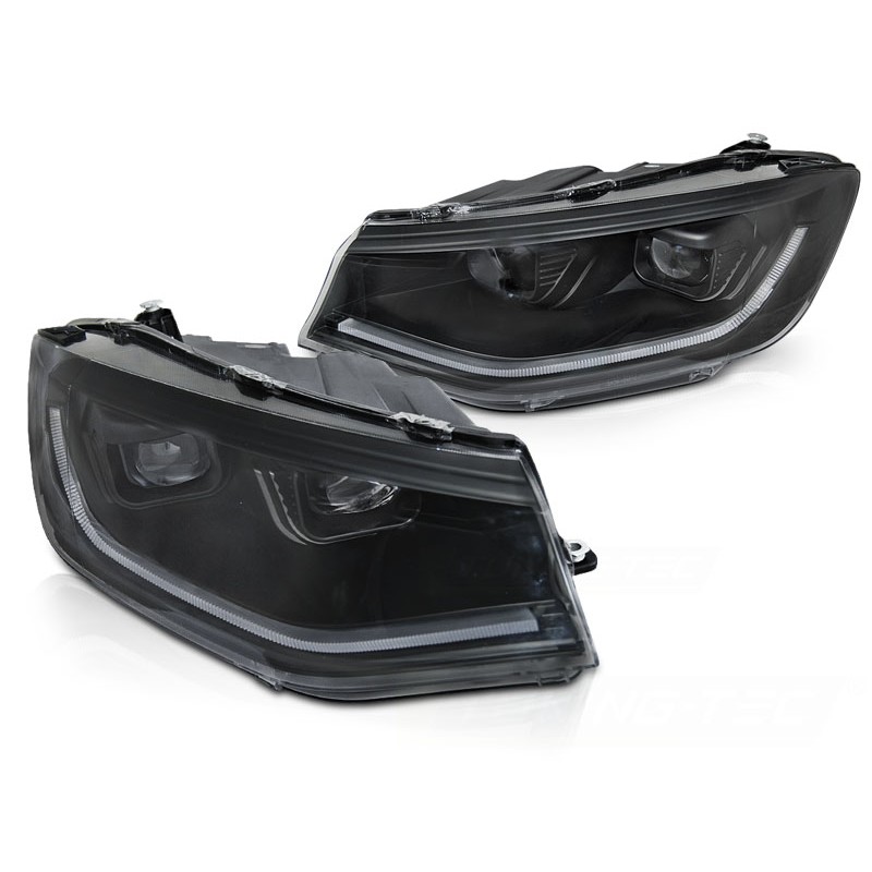 Découvrez les phares avant LED TUBE LIGHT noir DRL séquentiel spécialement conçus pour le VW Caddy 20-. Ces phares avant innovants allient design moderne et technologie avancée pour offrir une visibilité optimale et un style unique à votre véhicule. Parfaits pour remplacer vos phares halogènes standard, ces phares LED sont 100% neufs et vendus par paire, incluant les unités gauche et droite.
