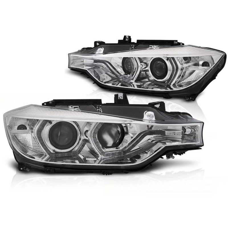 Découvrez les phares Angel Eyes jaunes LED DRL chrome spécialement conçus pour les modèles BMW F30 et F31 de 2011 à 2015. Ces phares à projecteur, dotés de feux de jour (DRL) en version jaune, apportent une touche d'élégance et de modernité à votre véhicule tout en améliorant votre visibilité sur la route.