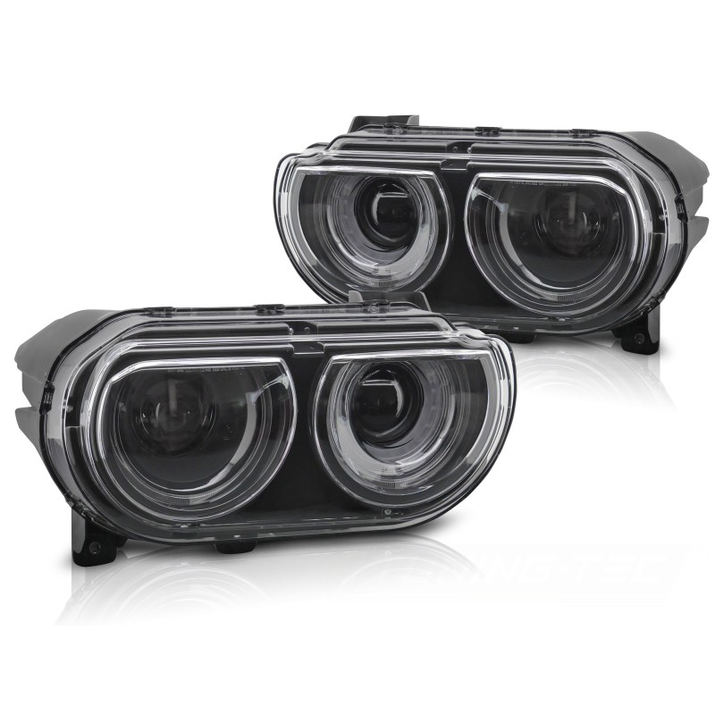 Découvrez les HEADLIGHTS BLACK DRL, spécialement conçus pour les modèles DODGE CHALLENGER de 2008 à 2014. Ces phares projecteurs de haute qualité, équipés de feux de jour à LED (DRL), offrent une combinaison parfaite de style moderne et de performance exceptionnelle. Transformez votre expérience de conduite avec un éclairage puissant et une esthétique raffinée.