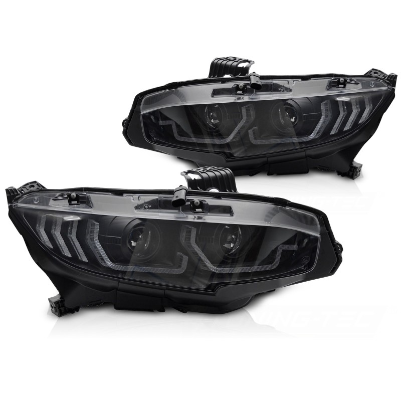 LED HEADLIGHTS BLACK DRL SEQ fits HONDA CIVIC X 16-21